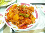 肉是在油鍋裏炸透后,再撈起和菠蘿炒在一起。所以肉咬上去是硬硬脆脆的,配上菠蘿和番茄醬,酸甜的口感很是開胃。